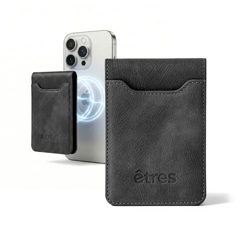 Etres Card Holder for MagSafe, RFID Block, Wallet Up to 7 Cards, Cash Space, Vegan Leather, Wallet for iPhone Series 17/16/15/14/13/12 with Adapter Ring, Black, Sottile, Modern