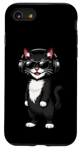 Funny Black Cat Wearing Headphones Music Case for iPhone SE (2020) / 7/8