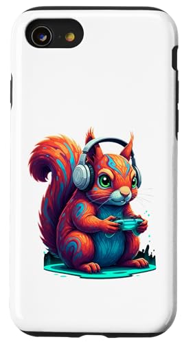 Colorful Squirrel Gaming with Headphones Controller Gamer Case for iPhone SE (2020) / 7/8