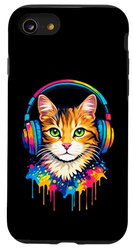 Cat Wearing Headphones Cute Colorful Cat Case for iPhone SE (2020) / 7/8
