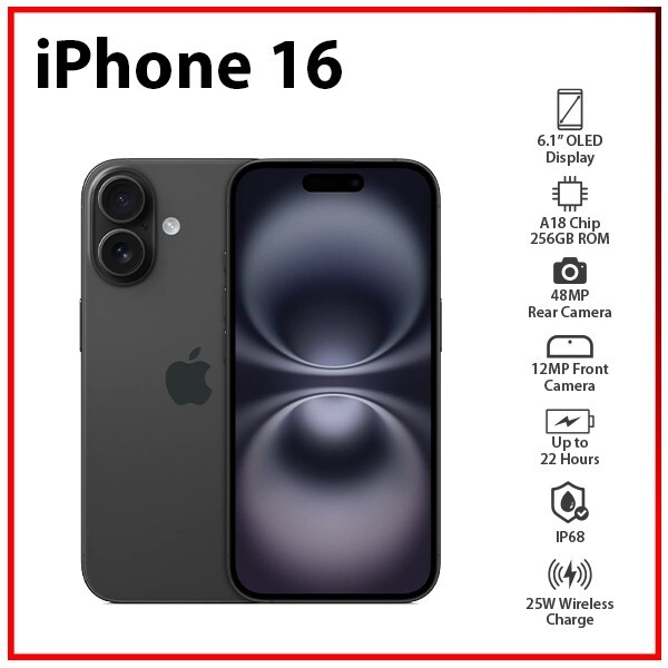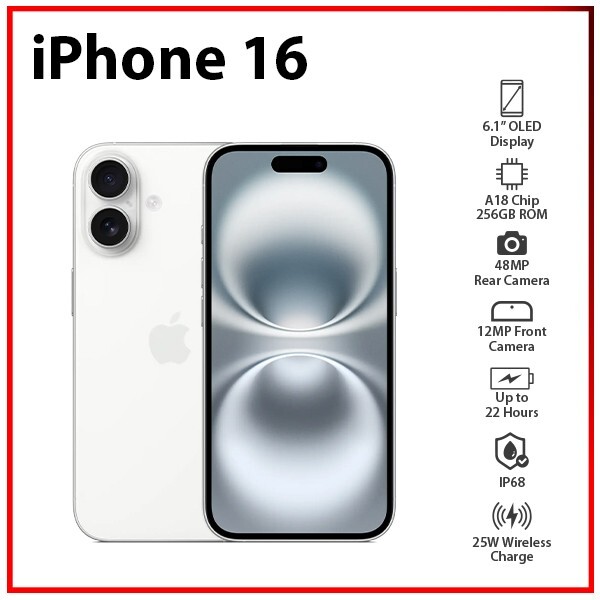 8GB, 2024, 256GB, 5G (NR), iPhone 16, 6.1 inches