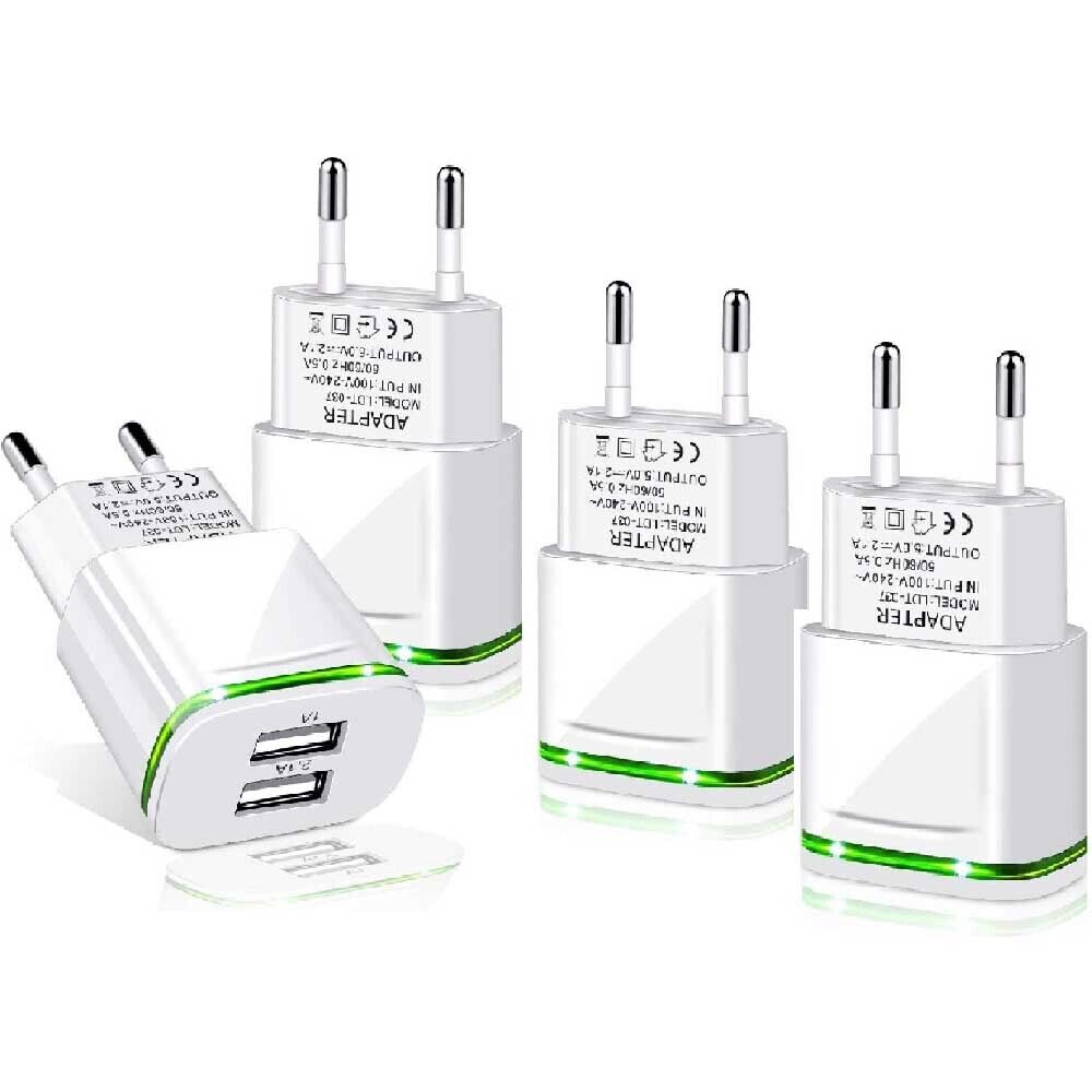 EU 2 Pin to Dual USB Plug Adapter, Travel Charger, Europe Adaptor iPhone Samsung