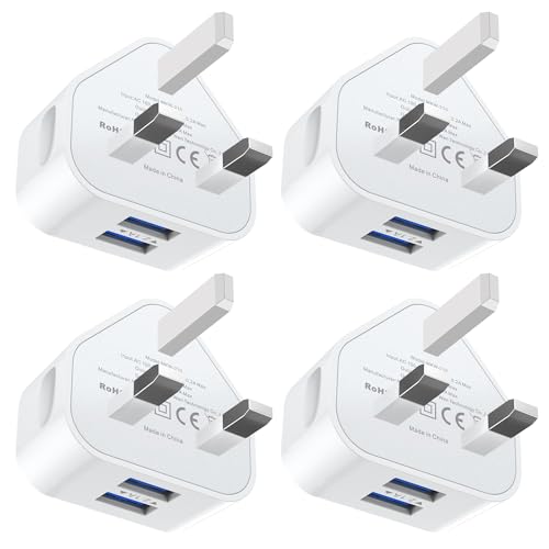 USB Plug UK, 4Pack USB Charger Plugs Adaptor 2.1A Phone Plugs with USB Port 3 Pin Main Charge Head Charging Socket for iPhone Apple 14 Pro Max 13 12 11 SE XS XR X 8 7 6 5,iPad(Cable Not included)