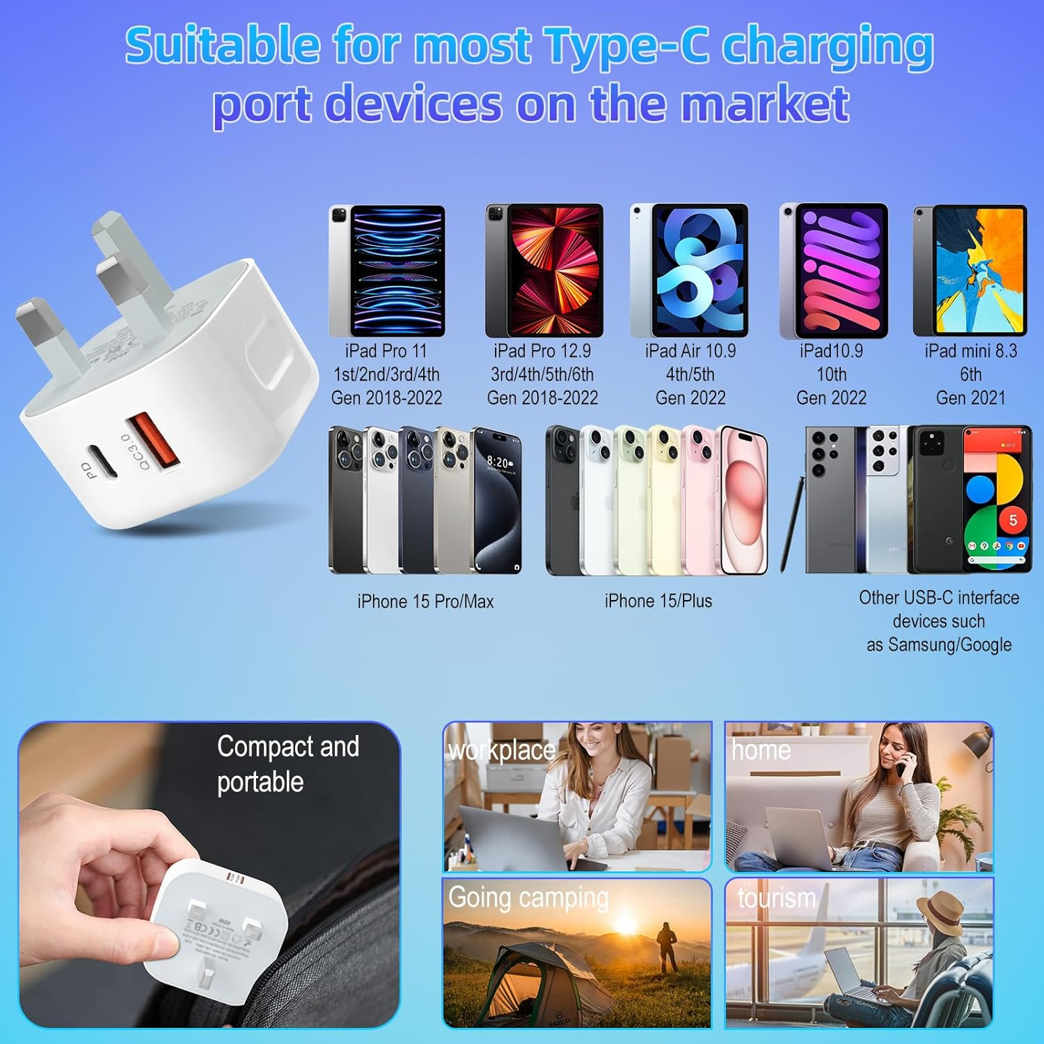 USB C Plug Fast Charge,25W USBC Charger Plugs Adaptor UK for New Apple iPhone 17 Pro Max Air 16e 16 Series/15 Series/14 Series/13 Series/12/11 SE/iPad Series/Watch,Type C and A USB Port Charging Plug