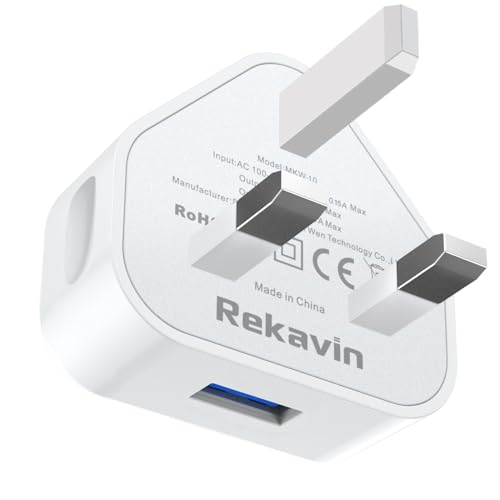 USB Plug UK 3 Pin Mains Charger,USB Wall Charger Plug Adaptor UK Compact Phone Charge Head 5V/1A/5W Charging for iPhone 11/11 Pro/10/Xs/XS Max/XR/X/8/7/6 Plus/5/5S/iPad,Samsung,MP3,USB Device