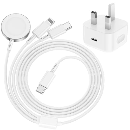 Apple Watch Charger, 20W USB C Charegr Plug and 3 in 1 iWatch Magnetic and Tye C/Lightning iPhone Cable with for iWatch Series 10/9/8/7/6/SE/5/Ultra, for iPhone 17 Pro Max/16 Max/15 Plus/14/13/12/11