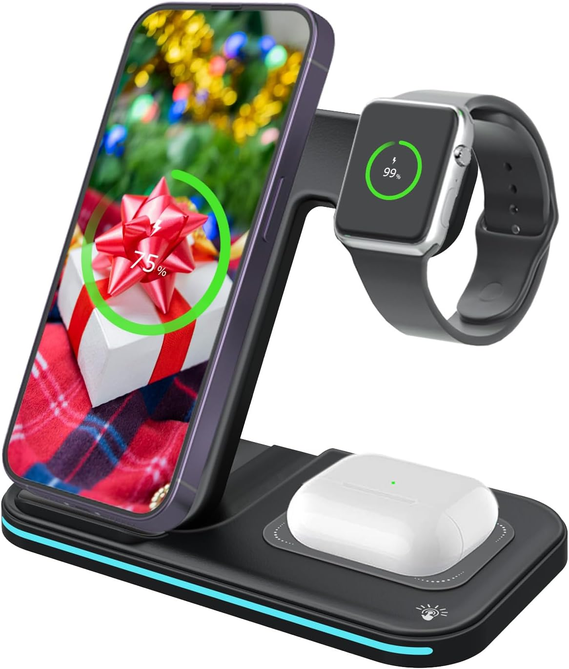 3-in-1 Wireless Charger Station, Fast Charging for iPhone, Apple Watch