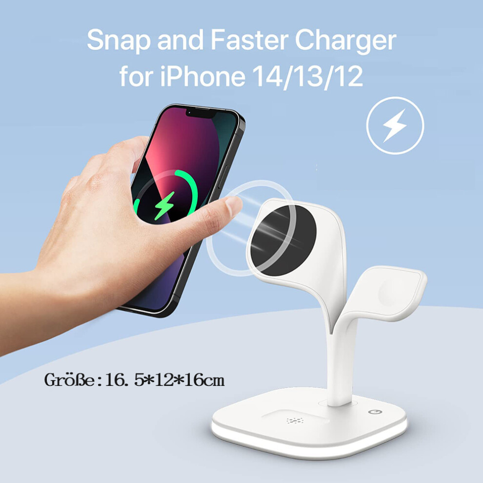 (White) 3 in 1 Wireless Charger Dual Magnetic Wireless Charger for iPhone Series and Apple Watch,