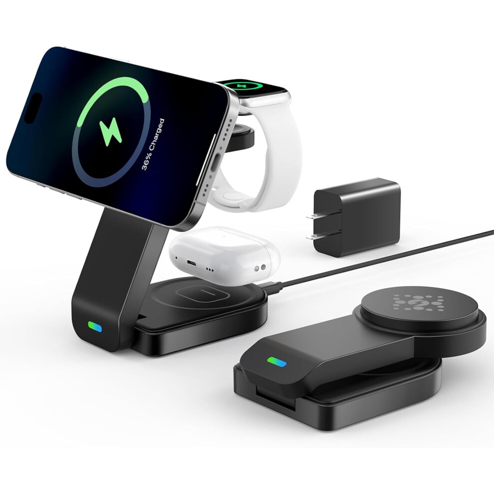 Efficient Charging Companion, Magnetic Wireless Charger with Foldable Design for iPhone, Apple Watch, AirPods, Equipped with Adjustable Stand and