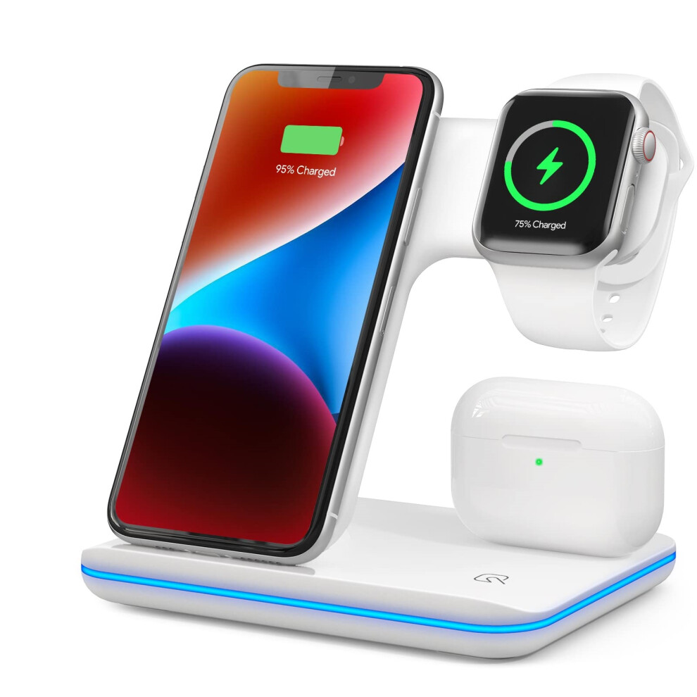 3 in 1 Wireless Charging Station, Wireless Charger Docking Station for iPhone 15/14/13/12/11/XR/XS/X/8 and Apple Watch 8/7/6/5/4/3/2/SE, 2022 Upgraded