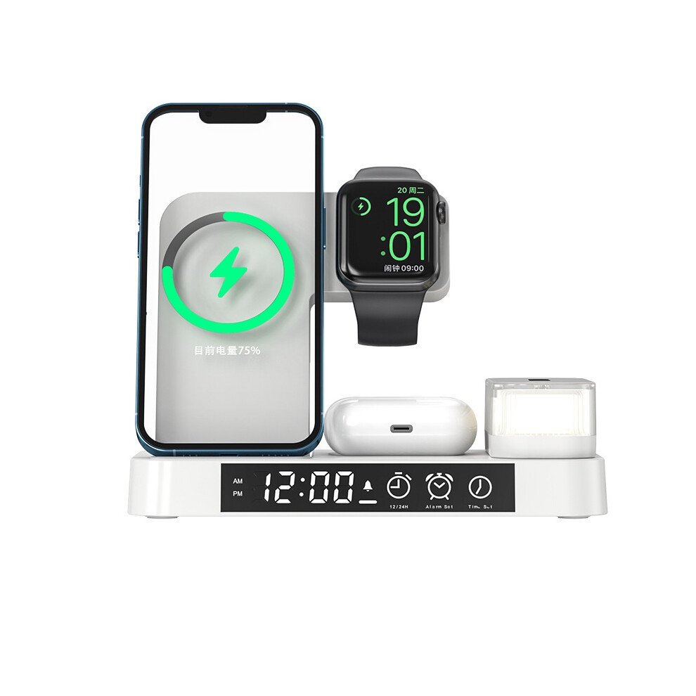 Chronus 4- in- 1 iPhone magnetic wireless charger, earphone and watch magnetic wireless charger, creative gift small house wireless charger(White)