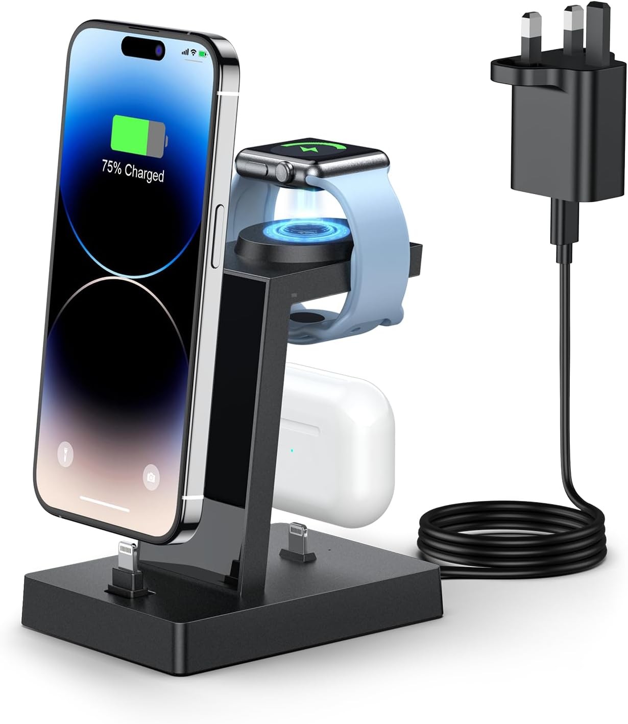 3 in 1 Wireless Charging Station, Wireless Charger Docking Station for iPhone 16/15/14/13/12/11/XR/XS/and Apple Watch 8/7/6/5/4/3/2/SE, Charging stand for AirPods 1/2/3/ Pro/Pro 2 with Lightning Port