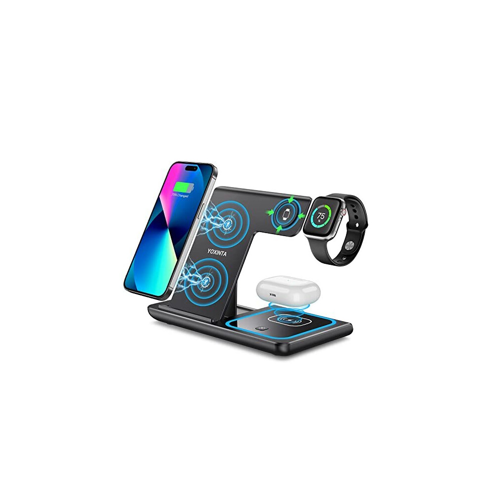 Chronus 3 in 1 Wireless Charger, Foldable Charging Station Dock for iPhone 15/14/13/12/11/SE/X/8 and Apple Watch Ultra/8/7/6/SE/3/2, AirPods(black)