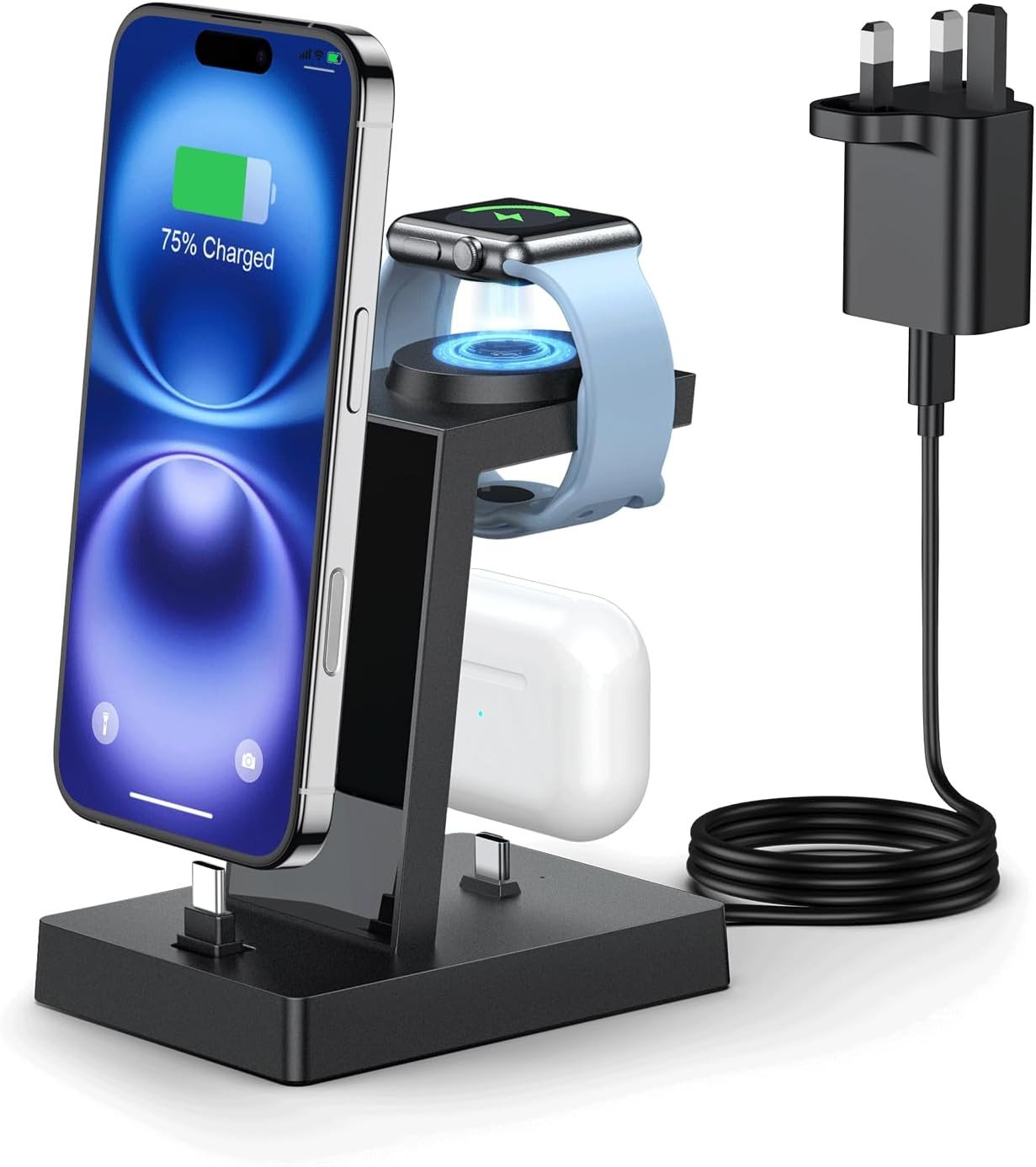 3 in 1 Wireless Charging Station, Wireless Charger Docking Station for iPhone 16/15/14/13/12/11/XR/XS/and Apple Watch 8/7/6/5/4/3/2/SE, Charging stand