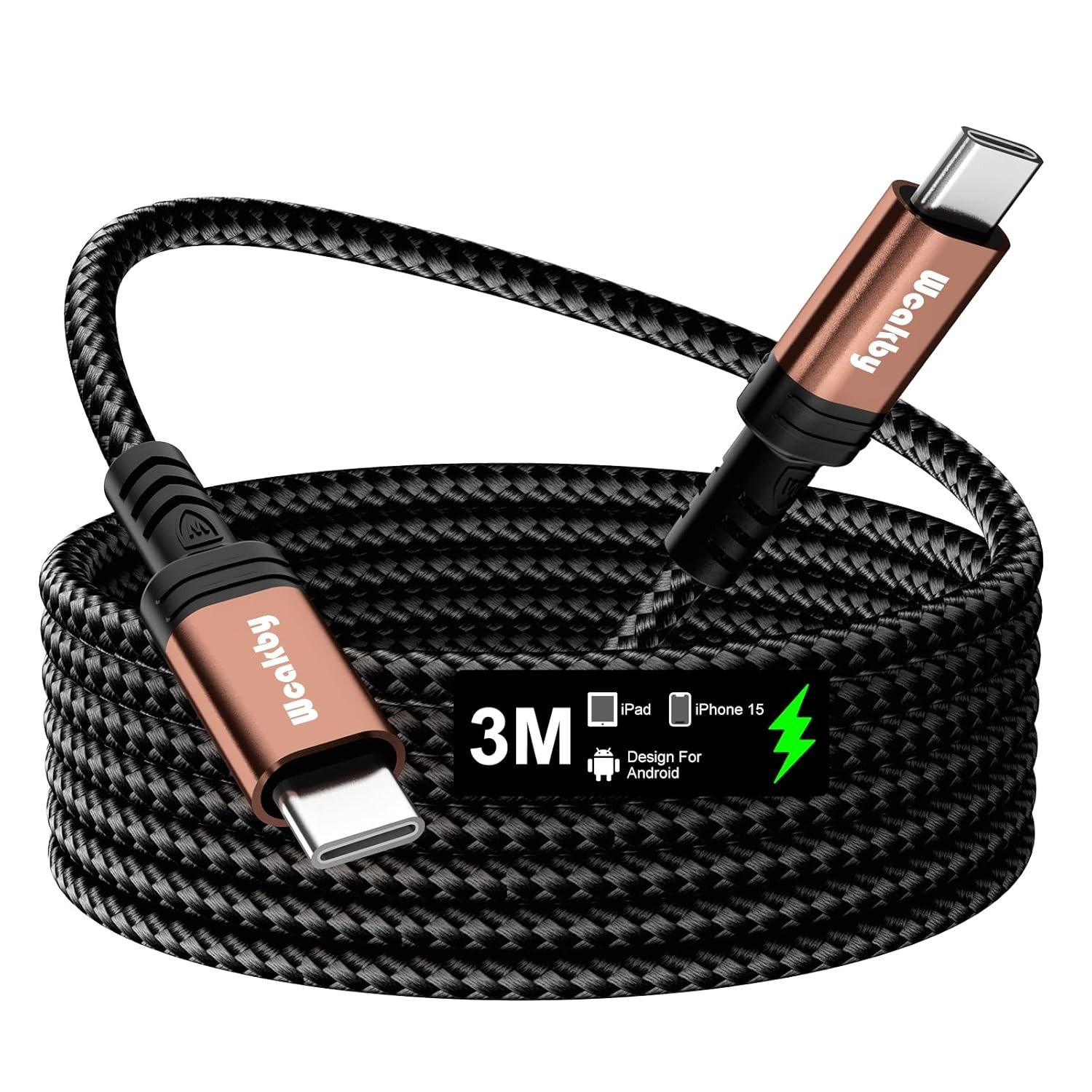 Wcakby iPhone 17 Charger Cable 3M, Type C to Type C Charger Cable Fast Charging Compatible with iPhone 17/16/15 Pro Max, PS5 Controller, MacBook Pro/Air, Galaxy S24/S23 Ultra, Pixel