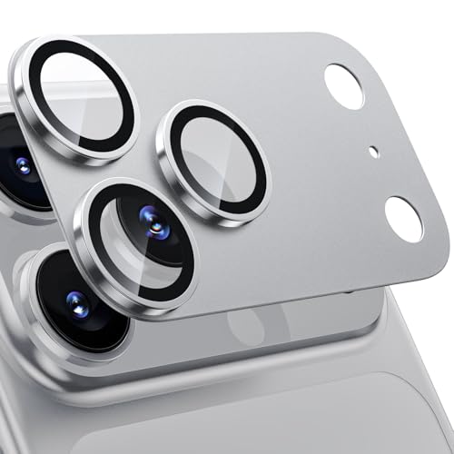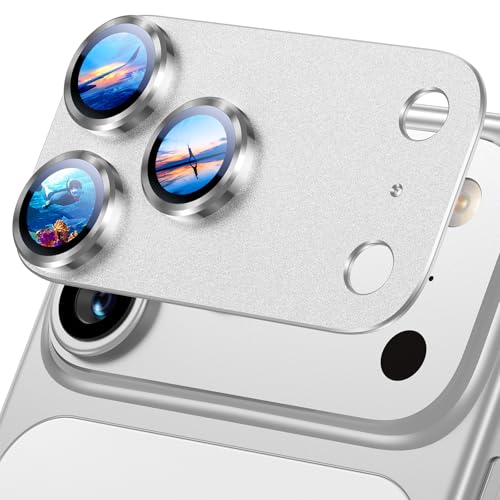UniqueMe for iPhone 17 Pro Camera Lens Protector - 1 pack [Strong Drop Protection] [Not Easy to Fall-off] All-in-one Aluminum Alloy Metal Ring Tempered Glass Rear Camera Lens Cover - Silver