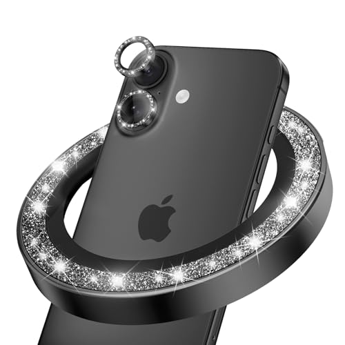 CloudValley for iPhone 17 Glitter Camera Lens Protector, Bling Ultra-HD Tempered Glass Cover with Metal Ring, Sparkly Anti-Scratch Accessories for Women, Easy Installation, Glitter Black