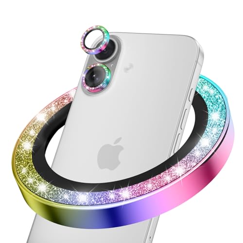 CloudValley for iPhone 17 Glitter Camera Lens Protector, Bling Ultra-HD Tempered Glass Cover with Metal Ring, Sparkly Anti-Scratch Accessories for Women, Easy Installation, Glitter Colorful