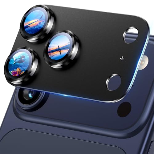 UniqueMe for iPhone 17 Pro Camera Lens Protector - 1 pack [Strong Drop Protection] [Not Easy to Fall-off] All-in-one Aluminum Alloy Metal Ring Tempered Glass Rear Camera Lens Cover - Black