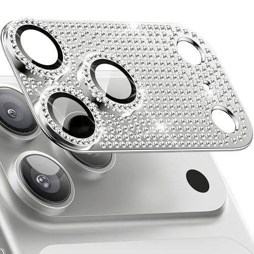 WSKEN for iPhone 17 Pro Camera Lens Protector - Matte Metal Plate Military Grade Shatterproof 9H Tempered Glass Screen Cover Accessories,Anti-Fingerprint,Scratch Resistant,Sparkle Diamond Silver