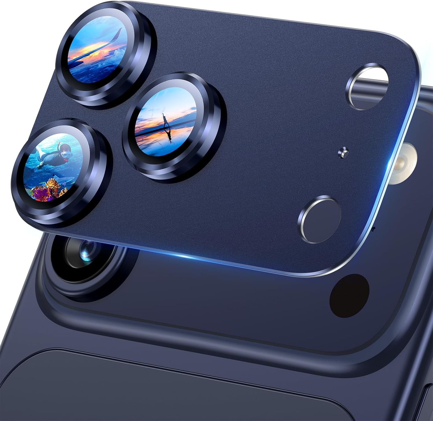 UniqueMe for iPhone 17 Pro Camera Lens Protector - [Strong Drop Protection] [Strong Adsorption] All-in-one Aluminum Alloy Metal Ring Tempered Glass Rear Camera Lens Cover[Case-Friendly] - Deep Blue