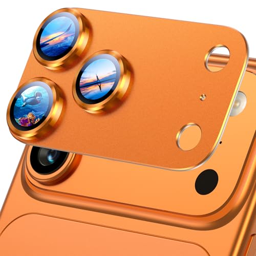 UniqueMe for iPhone 17 Pro Camera Lens Protector - [Strong Drop Protection] [Strong Adsorption] All-in-one Aluminum Alloy Metal Ring Tempered Glass Rear Camera Lens Cover[Case-Friendly]- Cosmic Orange