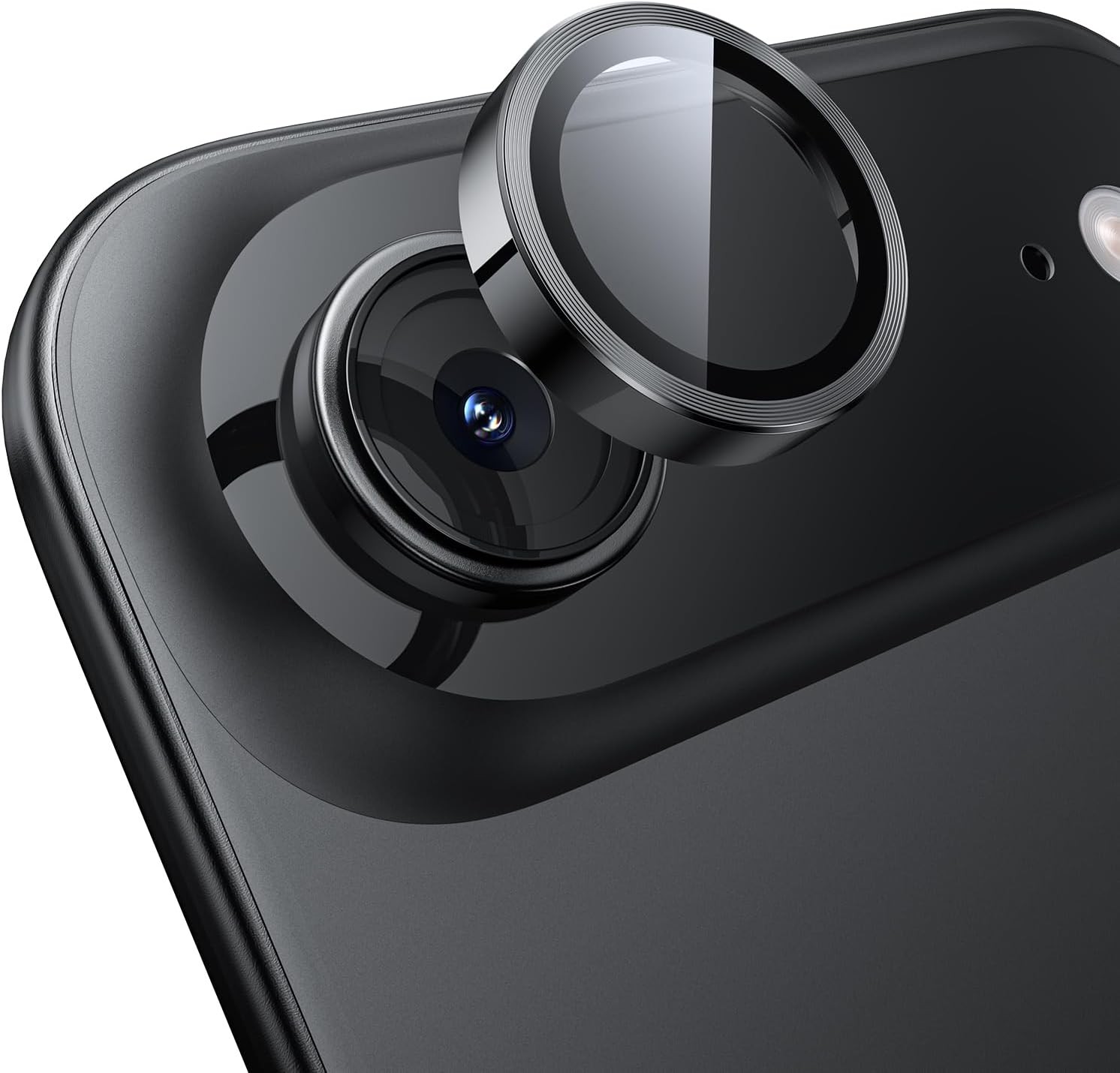 CloudValley for iPhone 17 Camera Lens Protector, [1 Second Installaion] Ultra-HD Tempered Glass Cover, [Case-Friendly] Metal Lens Screen Protective Ring, Black