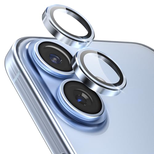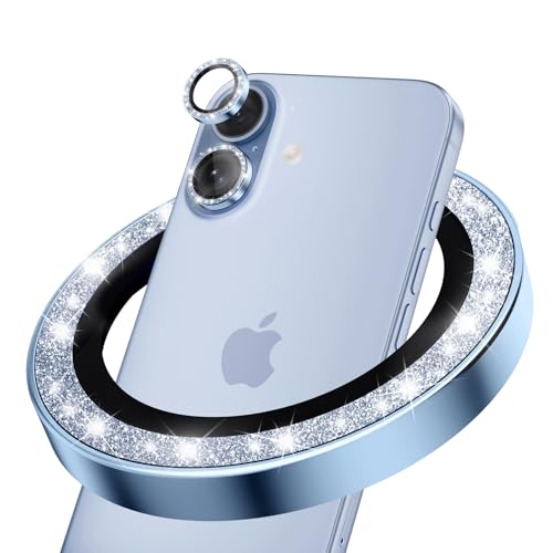 CloudValley for iPhone 17 Glitter Camera Lens Protector, Bling Ultra-HD Tempered Glass Cover with Metal Ring, Sparkly Anti-Scratch Accessories for Women, Easy Installation, Glitter Blue