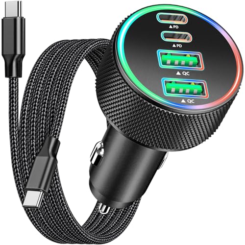 LISEN 96W Retractable Car Charger Adapter, USB C Car Phone Charger [2025 Upgrades] iPhone Car Charger Fast Charge for iPhone 16e 16 15 14 13 12 iPad Samsung S25 S24
