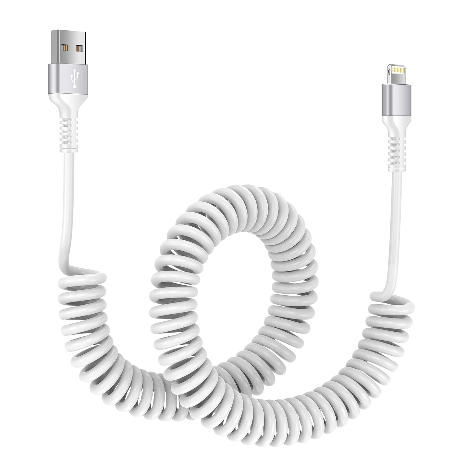 Coiled iPhone Car Charger Cable, [Apple MFi Certified],USB to Lightning Cable,i