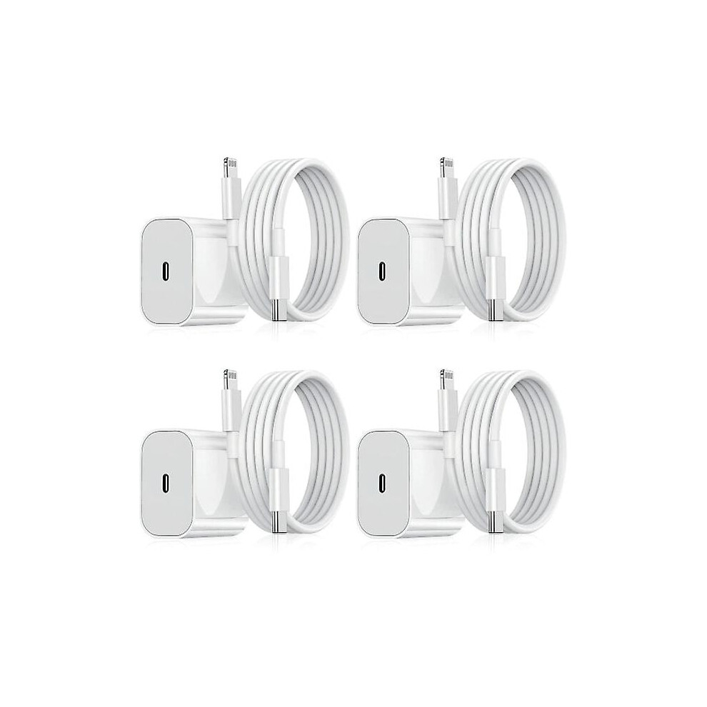Compatible with iPhone Charger - Fast Charger - Adapter + Cable 20W USB-C White 4-pack compatible with iPhone
