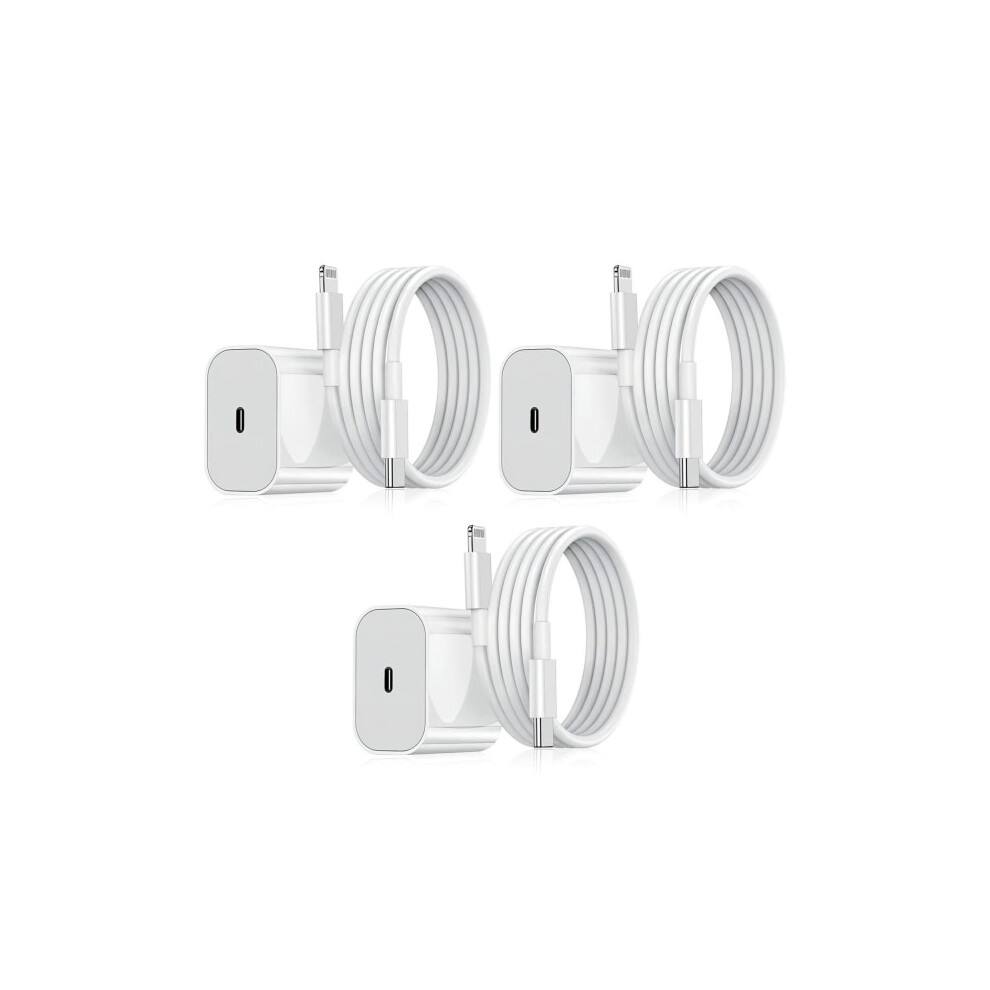 Charger for compatible with iPhone - Fast Charger - Adapter + Cable 20W USB-C White 3-Pack compatible with iPhone