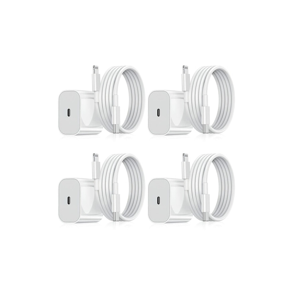 Compatible with iPhone Charger - Fast Charger - Adapter + Cable 20W USB-C White{DSC} 4Pcs