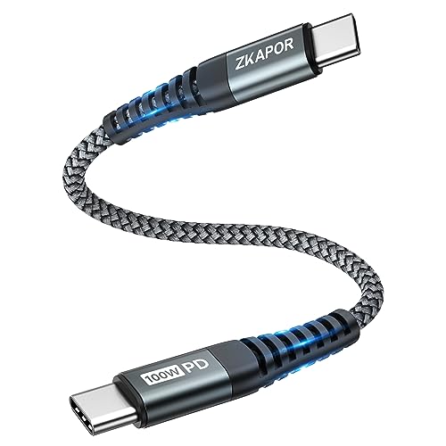 ZKAPOR USB C to USB C Cable Short 30CM, Type C to Type C Cable 100W USB C Charger Lead Fast Charging for iPhone 16/15 Pro Max, Samsung Galaxy S23 /S22, Pad Pro, Air, Huawei P40 /Mate 60, Pixel -Grey