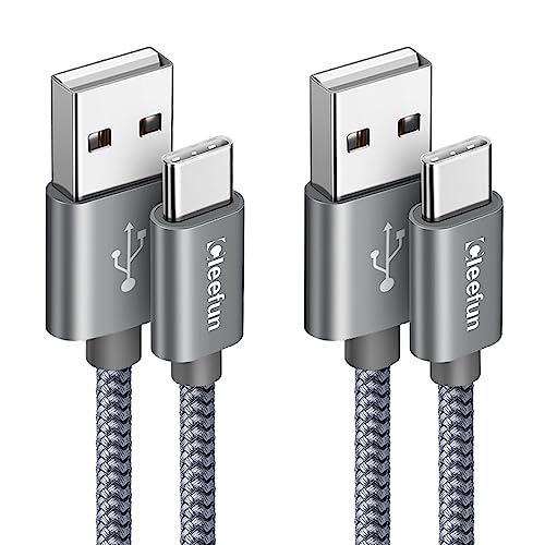 CLEEFUN 3M USB C Cable (2-Pack), Long PS5 Controller Charger Fast Charging USB-C to USB-A Braided Lead for iPhone 17 16 16e 15 Pro, Samsung S25 S24 S23 S22 S21 S20 S10 S9 S8 + A51 A52 A53 A70 -Grey