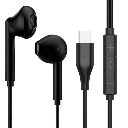 USB C Headphones for iPhone 17 16 15 Pro iPad Pro, USB Type C Earphones USB C Wired Earbuds Microphone Volume Control for Samsung S25 S24 Ultra S23 S22 S21 Note20 A54, Pixel 9 8 7 6 6a 5 4,OnePlus9