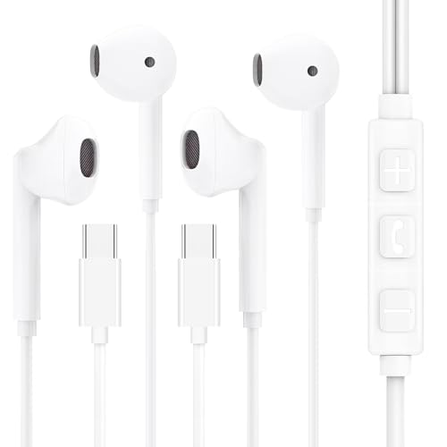 Vkozlm USB C Headphones Wired for iPhone 16 15, iPad Pro Air Mini, Wired Earbuds USBC for iPad 10, MacBook, Lenovo, Dell, Type C Earphones for Google Pixel, Samsung, Microphone, Volume Control, 2 Pack