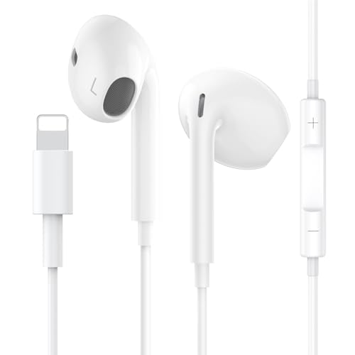 Earbuds with Lightning Connector, [MFi certified] In Ear Wired Earphones for Apple iPhone 14/14 Plus/13/12/11/8/7 X Pro Max with HiFi Audio Stereo Microphone (White)