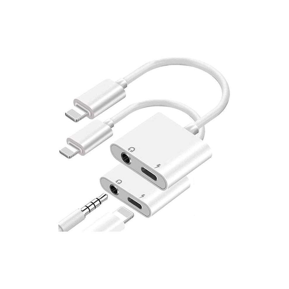 2-Pack MFi Certified 2-in-1 Lightning Adapter, compatible with iPhone, 3.5mm Headphone Jack & Charger Splitter