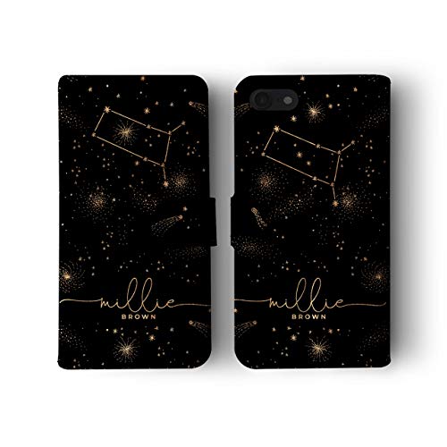Tirita Personalised Leather Flip Wallet Phone Case with Card Holder Compatible with iPhone 7/8 / SE 2020 / SE 2022 - Zodiac Signs Horoscopes [15 - Black and Gold Capricorn]