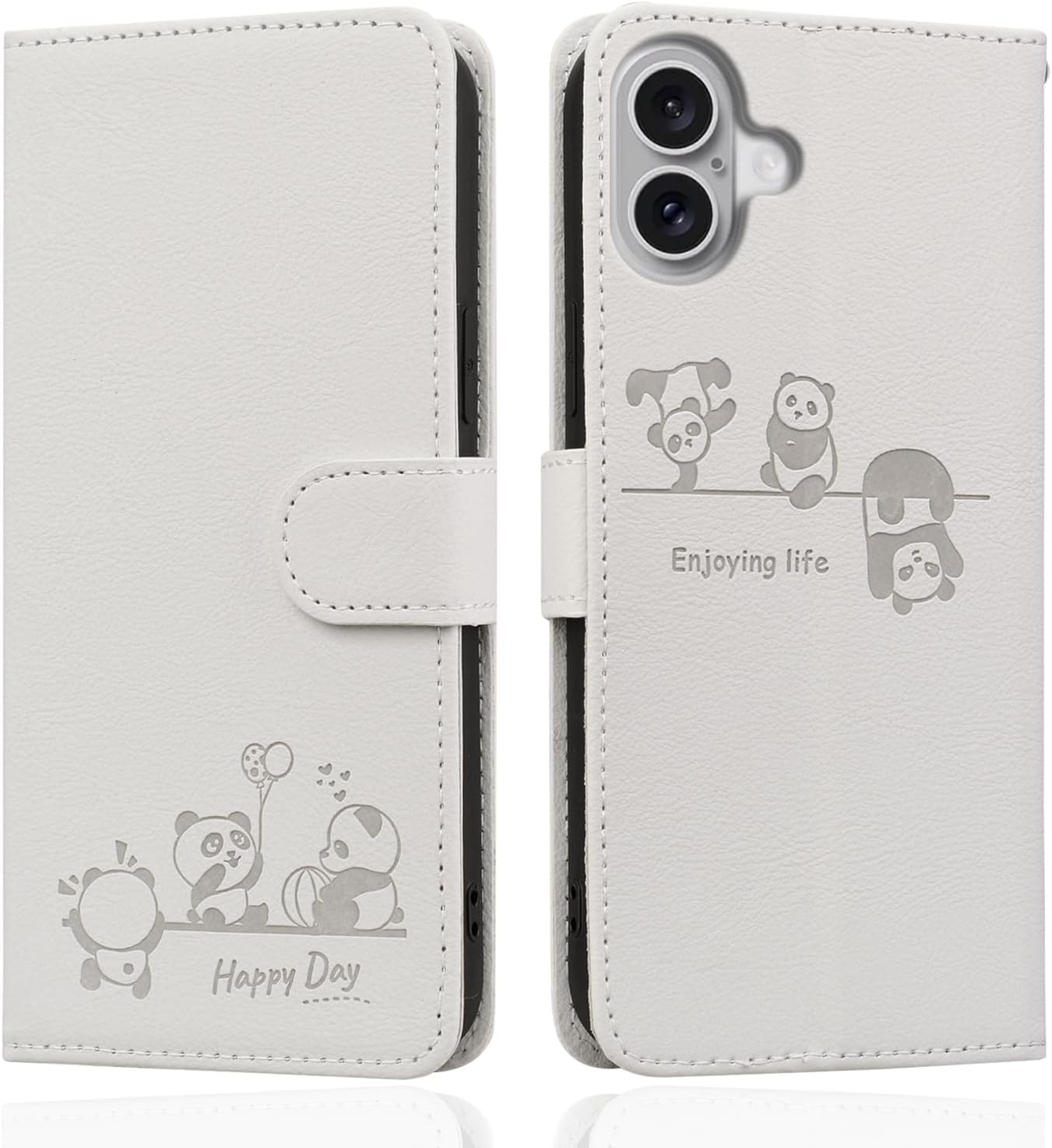Flip Case for compatible with iphone 16 Holder Cover Wallet Case Flip Folio Card Pocket Embossed Cute Cat