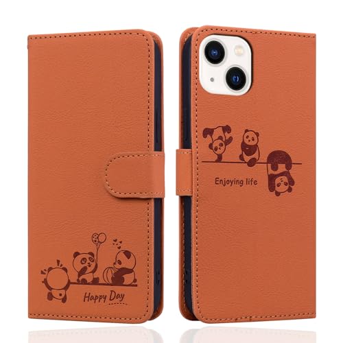 Butnyeoe for iPhone 14 Flip Case with Card Holder, iPhone 14 Wallet Case for Women, PU Leather Magnetic Book Protective Phone Cover, Cute Cartoon Panda Orange