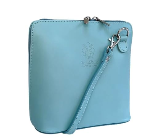 LeahWard® Genuine Italian Leather Hand Made Small Cross Body Bag Phone Holder iPhone Case Shoulder Handbag (Pale Blue)
