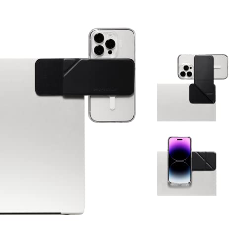 MOFT Magnetic Laptop iPhone Holder, Slim Foldable Adjustable Phone Monitor Side Mount for Laptop, Portable Computer Expansion Bracket (Black)