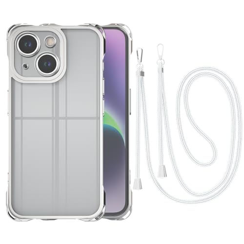CAROKI Crossbody Case iPhone 14,Necklace Mobile Phone Cover with Cord Strap,Clear Transparent TPU Soft iPhone Cover Holder with Neck Cord Lanyard Strap for iPhone 14 6.1"-Light Silver