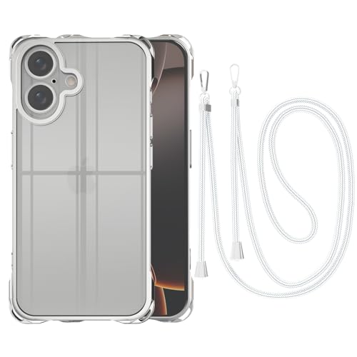 CAROKI Crossbody Case for iPhone 16,Necklace Mobile Phone Cover with Cord Strap Soft TPU Bumper iPhone 16 Cover Holder with Neck Cord Lanyard Strap-Light Silver