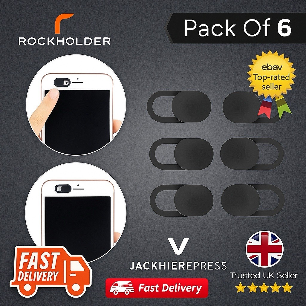 Webcam Cover 6 PACK Thin Camera Slider Iphone Laptop Mobile Tablet Black UK
