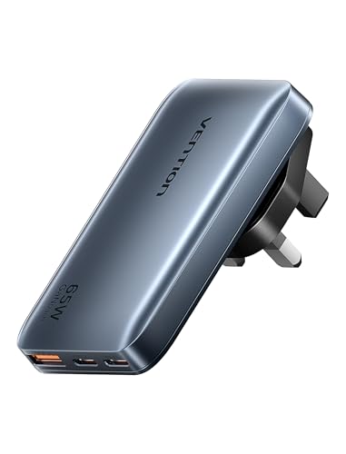 VENTION 65W USB C Fast Multi Charger with UK/US/EU Plugs, Ultra-Slim, 3-Port International Travel Adapter for UK, EU, USA, GaN Charger Compatible with MacBook, Laptop, iPhone 17/16/15/14, Galaxy S25