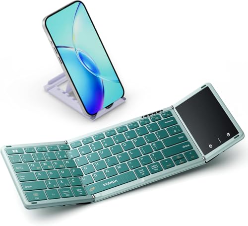 Seenda Foldable Bluetooth Keyboard with Touchpad, Folding Portable Travel Rechargeable Wireless Mini Keyboard UK Layout for iOS Android Windows PC Tablet Mobile Phone iphone ipad, Green