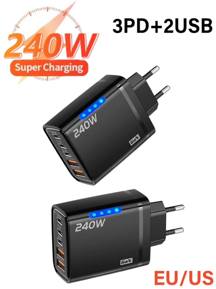 240W GaN USB C Charger EU/US/UK Plug Fast Charging Adapter High Speed Charging Mobile Phone Wall Charger For iPhone 17 16 Xiaomi